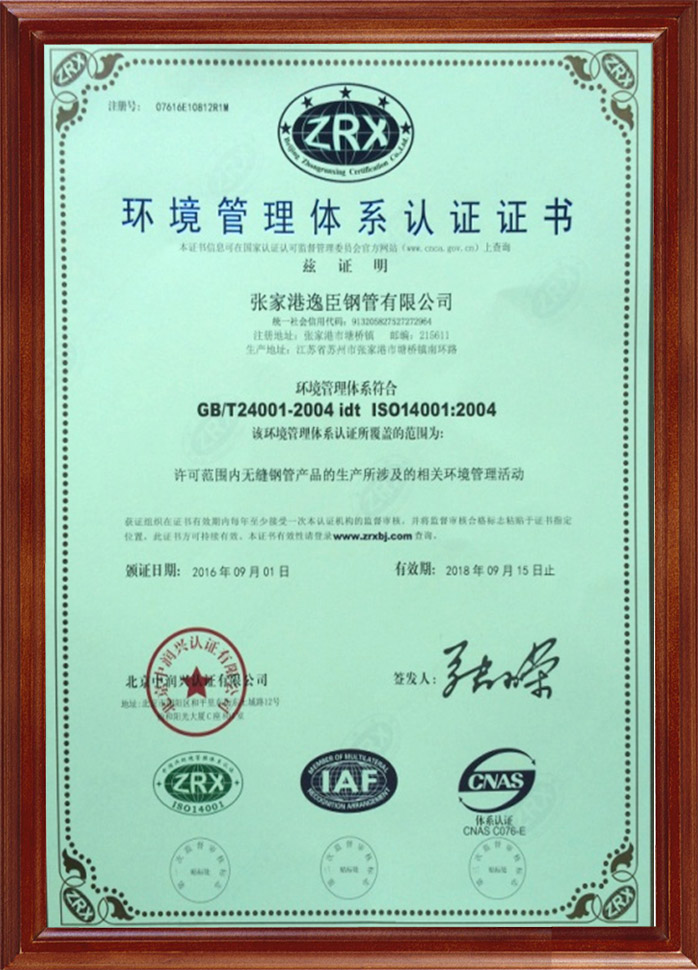 環境管理體系認證證書